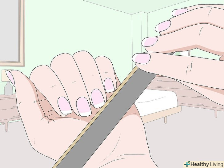 Підрізайте, очищайте і підпилюйте нігті щотижня. не обов'язково ходити на манікюр раз в тиждень, але якщо ви будете підрізати, підпилювати і чистити нігті, цього буде достатньо для базової гігієни. Якщо ви носите довгі нігті, очищайте простір під ними пилкою і милом з водою, оскільки під довгими нігтями можуть розмножуватися бактерії. [14]- Не гризіть нігті і кутикули. Це може привести до травм нігтів і розвитку інфекції.