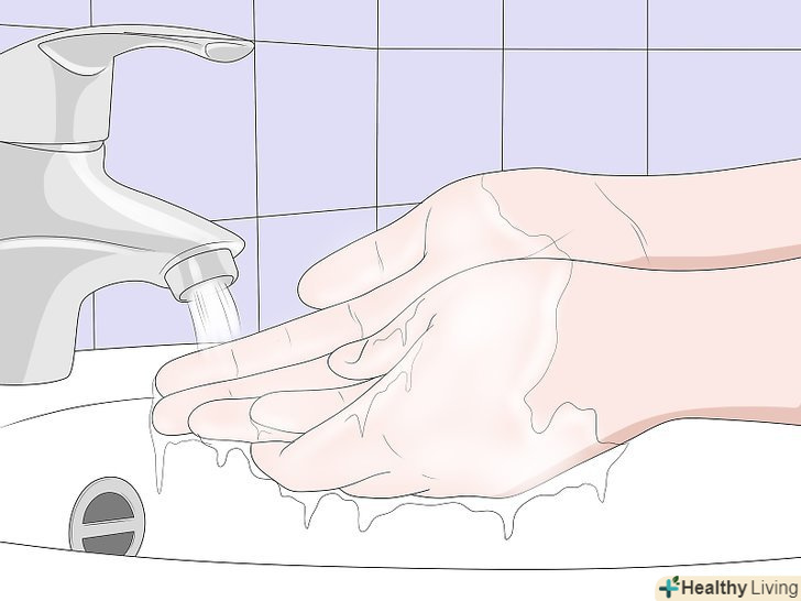 Мийте руки після туалету і перед їжею. належна гігієна рук дозволить вам захистити себе від мікробів і бактерій, які збираються на руках протягом дня. Піднесіть руки під проточну теплу воду і мийте їх з милом протягом 20 секунд. Ретельно промийте руки від мила і витріть чистим сухим рушником. [8]