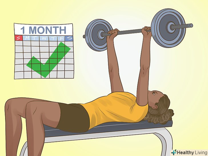 Вправляйтеся хоча б один місяць, щоб помітити результати. нарощування м'язів вимагає часу, тому, швидше за все, вам доведеться тренуватися 4-6 тижнів, перш ніж ви помітите будь-які зміни в своїй фігурі. Якщо після 4-6 тижнів ви не побачите ніяких результатів, збільште час тренувань і їх інтенсивність.- Міняйте вправи кожні 6-12 тижнів, щоб організм з часом пристосовувався до тренувань, і фігура поступово змінювалася. [17]