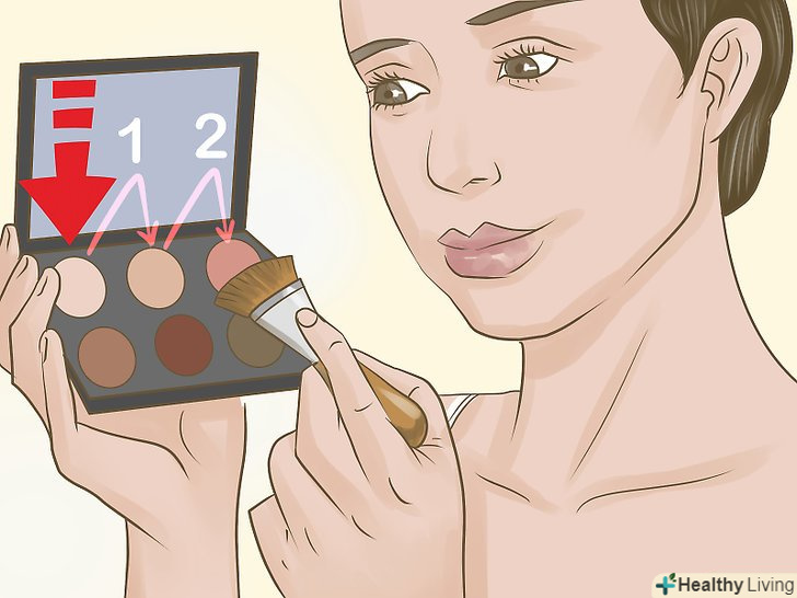 Тепер розтушуйте бронзер пензлем. візьміть кисть і розтушуйте бронзер і хайлайтер, злегка змішуючи їх і створюючи м'який перехід і ледь помітний контур. Потім подивіться в дзеркало і оцініть, чи немає помітних не розтушованих смуг бронзера. [21]- Подивіться в дзеркало в кімнаті з природним освітленням, щоб зрозуміти, як виглядає контурінг.