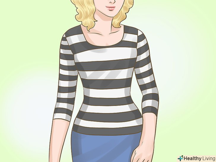 Носіть одяг з горизонтальними смугами. горизонтальні лінії візуально роблять грудну клітку ширше, через що сама груди виглядає більше. Від одягу з широкими лініями ефект набагато більше, ніж від одягу з тонкими вузькими лініями. Одягніть сорочку і однотонну спідницю або штани, щоб краще підкреслити бюст. [8]- Деяким людям здається, що горизонтальні смужки не підходять для їх типу фігури. Топи і футболки з гофрованої тканини теж можуть додати грудей обсяг, через що верхня частина тіла буде в цілому виглядати трохи більше.