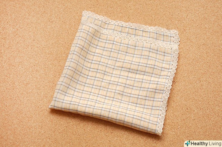 Розкладіть носовичок на рівній поверхні і візьміть його великим і вказівним пальцями посередині.