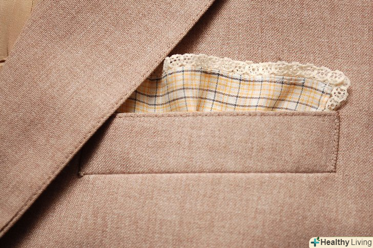 Покладіть складений носовичок в нагрудну кишеню вашого піджака так, щоб ця частина з 1-2 см відступу виглядала з кишені. розгладьте хустку внизу, щоб не було ніяких складок.