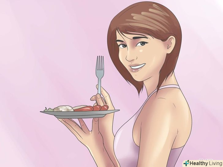 Не пропускайте прийоми їжі і не голодуйте. іноді люди відмовляються від їжі, щоб схуднути, проте нестача їжі зіб'є режим і заплутає ваш організм. Краще їсти три рази на день і займатися спортом. Це дозволить вам підтримувати здорову вагу, і у вас завжди будуть сили, необхідні організму для росту і розвитку. [18]- У вашому віці ви можете бути схильні до емоційного переїдання. Підлітки іноді їдять, тому що відчувають стрес, від нудьги або тому що їм сумно. Щоб цього не відбувалося, ведіть щоденник, бігайте або ходіть гуляти, спілкуйтеся з друзями, станьте волонтером. Корисні харчові звички допоможуть вам краще ставитися до свого тіла і відчувати себе здоровою.