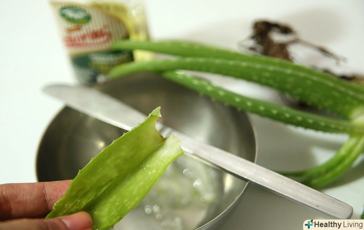 Ножем витягніть з алое м'якоть. переконайтеся, що рослина не молоде, а його м'якоть щільна і не водяниста.