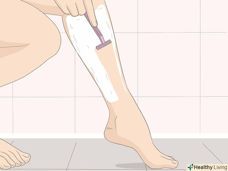 Видаліть грубі або товсті волоски на тих місцях, які ви хочете покрити автозагаром. грубі волоски заважають наносити лосьйон для автозасмаги — він лягає нерівномірно. Поголіть або видаліть воском волосся на всіх ділянках шкіри, на які ви збираєтеся наносити лосьйон.- Якщо у вас тонке волосся, то вам, швидше за все, не доведеться їх голити.