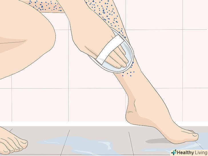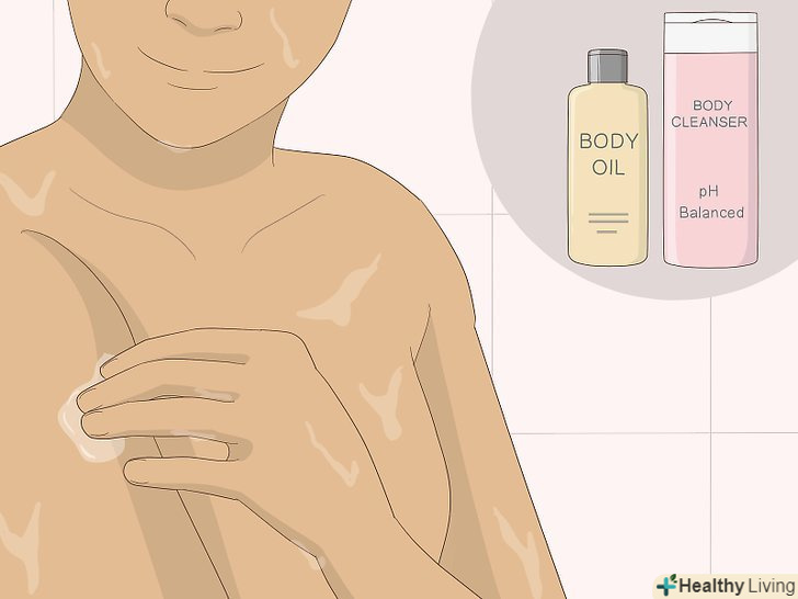 Прийміть душ. більшість лосьйонів для автозасмаги погано переносять воду. Нанесіть легке масло для тіла за кілька хвилин до того, як приймати душ, щоб зберегти лосьйон на тілі під час миття. Постарайтеся використовувати засіб для миття тіла з позначенням збалансованого pH і уникайте отшелушивающего або агресивного мила, яке зневоднює і освітлює шкіру.- Не користуйтеся скрабами або жорсткими щітками, так як вони видаляють сухі і омертвілі частинки шкіри, а разом з ними і Новий загар.
