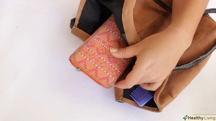 - Почистіть вашу сумку всередині за допомогою липкого ролика. покладіть сумку на бік і витягніть підкладку. Пройдіться роликом по підкладці, переверніть сумку на іншу сторону і зробіть те ж саме. Якщо ваша сумка досить велика, то ви можете навіть не вивертати підкладку, а просто пройтися роликом по внутрішній її частині. [9]