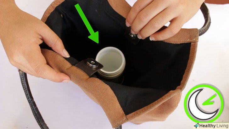- Не використовуйте спирт на поверхні сумки, зробленої з обробленої шкіри. Замість цього використовуйте магічну гумку. Сумки з обробленої шкіри не темніють від води. [17]