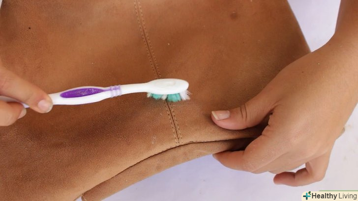 Знайдіть щітку з м'якою щетиною. кращим варіантом є спеціальна щітка, яка продається в наборах по догляду за замшею. Ви також можете використовувати чисту зубну або манікюрну щітку.- Використовувану зубну або манікюрну щітку потрібно застосовувати виключно для чищення замші. Не користуйтеся нею для будь-яких інших цілей.