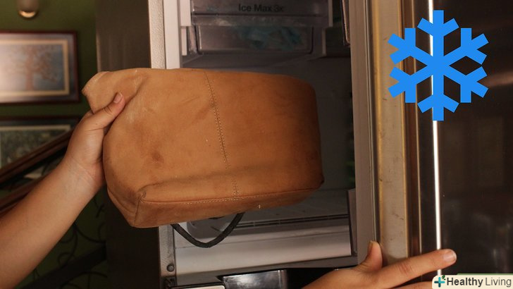 Заморозьте віск або смолу. Сумку із забрудненням у вигляді воску або смоли слід помістити в морозилку на кілька годин. Віск або смола затвердіє. Після цього вийміть сумку з морозилки і видаліть віск/смолу. Можливо, вам буде потрібно за допомогою нігтя отковирнуть залишки забруднення.- Для видалення плям крові використовуйте перекис водню. просто змочіть паперовий рушник або ватний тампон в перекису водню і потріть пляму. Кінцевим результатом буде повне зникнення плями. Цей метод найбільш ефективний для виробів із замші.