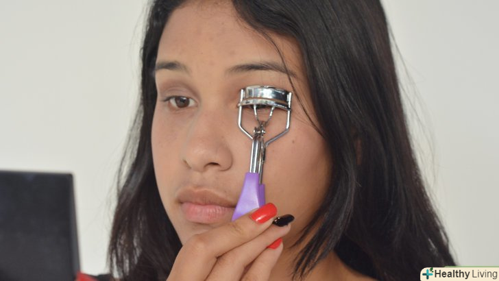 Закрутіть вії. Тримайте затиск протягом п'яти секунд. Доступ до вій буде краще, якщо ви трохи прикриєте очі. Пам'ятайте, що підкручувати вії необхідно до нанесення туші, а не після.