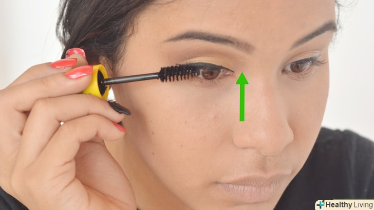 Нанесіть туш. Можете нафарбувати сильно або злегка. Є багато різних брендів і формул для обсягу, довжини або поділу. Знайдіть те, що Вас задовольнить. Почніть з основи верхніх вій і повільно рухайтеся вгору. Для більш важкого макіяжу можете нанести туш і на нижню повіку. Якщо ви хочете нанести кілька шарів, робіть це, поки перший шар ще не висох, – нанесення нового шару на суху туш призведе до утворення грудок.
