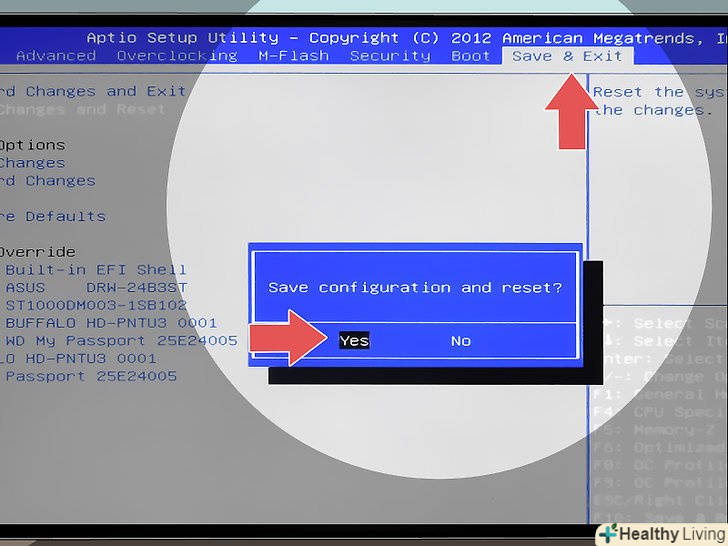 9. Збережіть зміни і вийдіть з BIOS.у більшості версій BIOS для цього потрібно натиснути певну клавішу-перевірте призначення клавіш в правій частині (або внизу) екрану, щоб з'ясувати, яку клавішу натиснути.