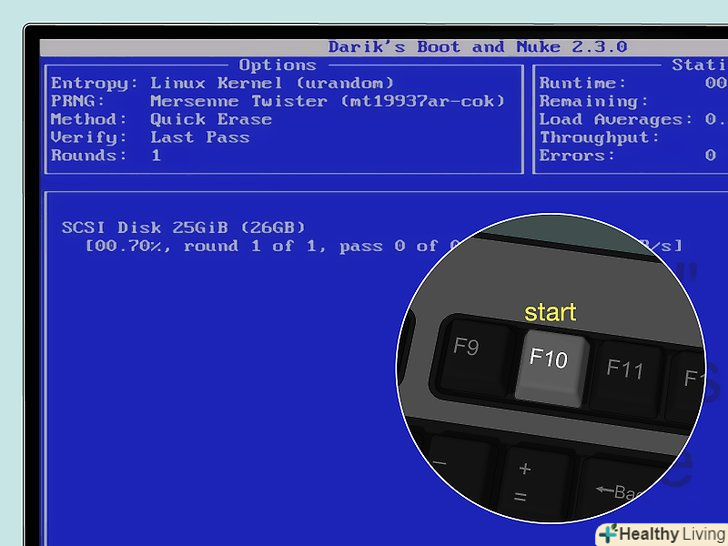 11. Очистіть жорсткий диск. для цього натисніть F10 або клавішу, вказану в списку клавіш внизу вікна. Запуститься процес очищення диска. Він займе як мінімум кілька годин, тому переконайтеся, що комп'ютер підключений до надійного джерела живлення.