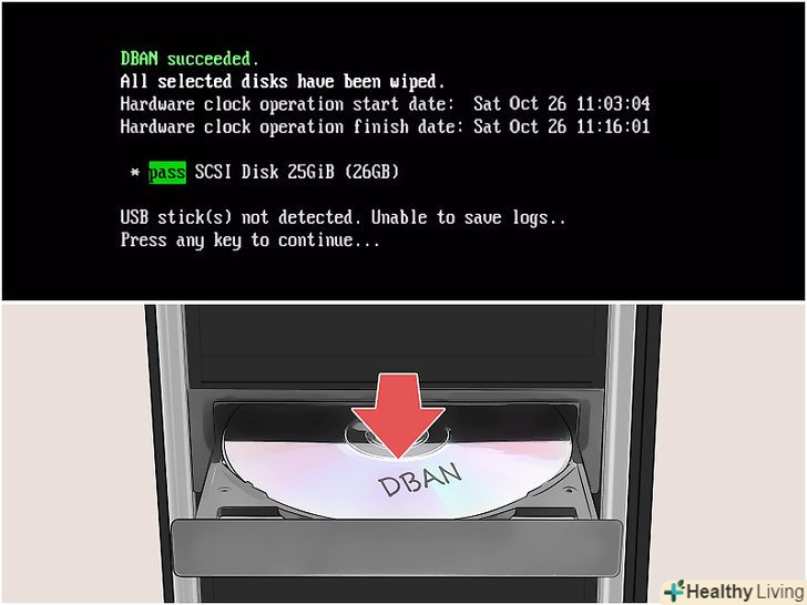 12. Вийміть DVD-диск з програмою DBAN, коли з'явиться запит.зробіть це, коли на екрані відобразиться реклама Blancco. Жорсткий диск безпечно очищений.
