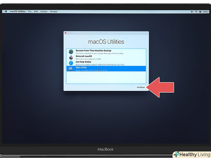 • Щоб заново встановити операційну систему, вийдіть з дискової утиліти і натисніть "перевстановити macOS" &#gt;»продовжити". Тепер підключіть комп'ютер до Інтернету, щоб завантажити інсталяційні файли системи.