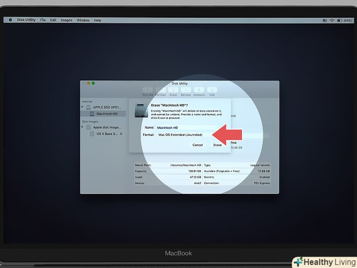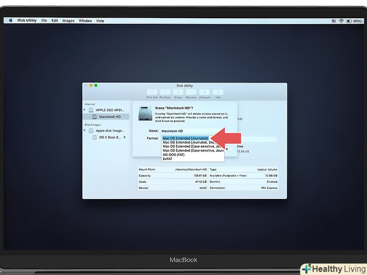 10. ВиберітьMac OS Extended.ця опція розташована в меню.