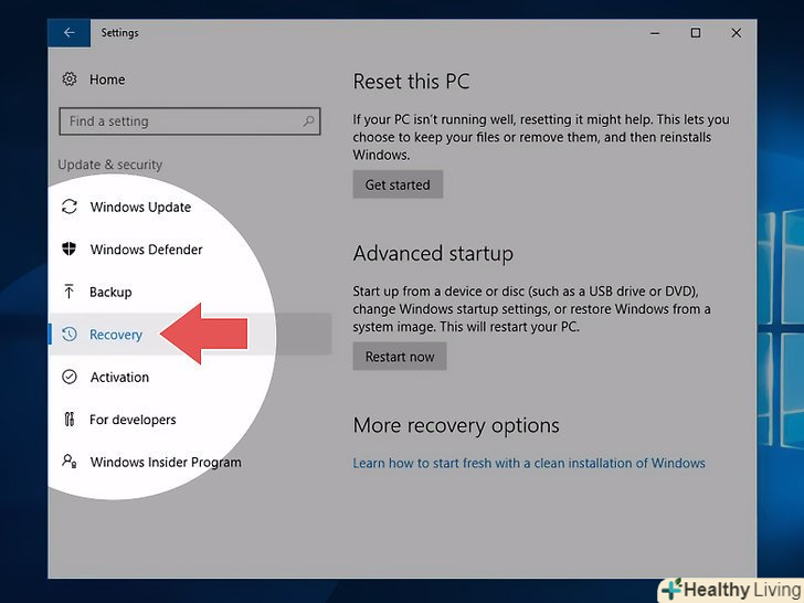 4. Клацніть поВідновлення.ця вкладка знаходиться на лівій панелі.