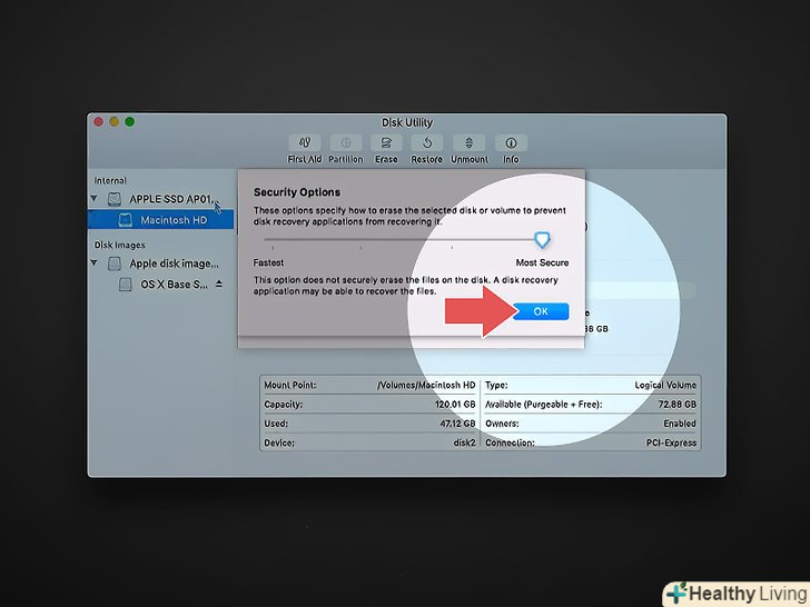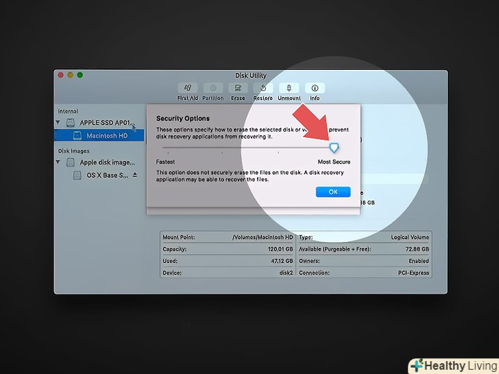 10. Виберіть опцію "високий рівень безпеки".для цього пересуньте повзунок в крайнє праве положення. Ця опція дозволить сім разів перезаписати жорсткий диск випадковими даними.