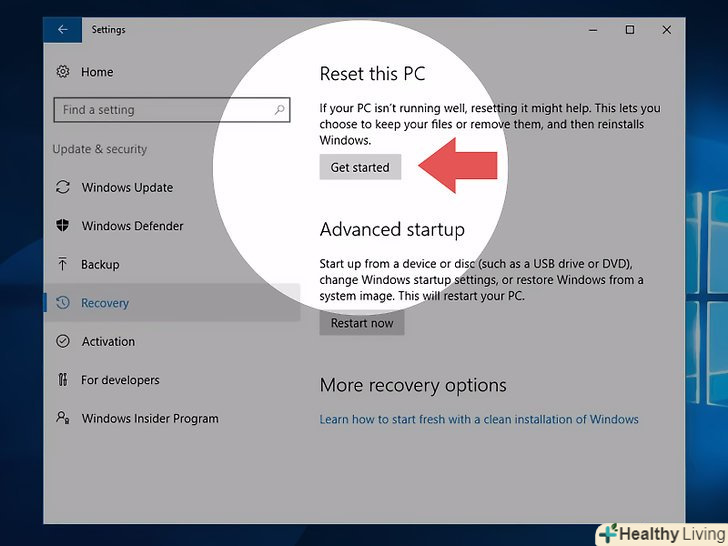 5. НатиснітьПочати.ця опція знаходиться у верхній частині вікна під «повернути комп'ютер у початковий стан". З'явиться спливаюче вікно.