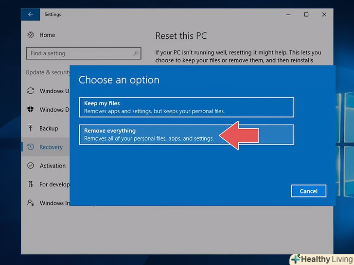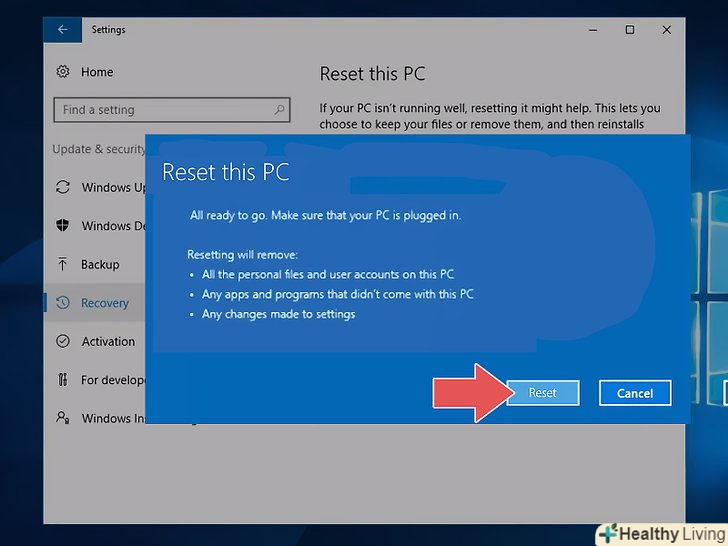 8. НатиснітьСкинути.ця кнопка знаходиться внизу вікна. Запуститься процес видалення файлів. Коли жорсткий диск буде очищений, ви перейдете на сторінку налаштувань, на якій увійдете в Windows як новий користувач.