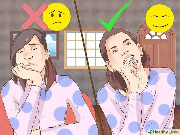 Посміхайтеся. як то кажуть, "посміхнися, і світ посміхнеться тобі у відповідь". Це чудова порада. Ви зрозумієте, що він набагато краще, ніж може здатися на перший погляд, коли дізнаєтеся, що посмішка викликає позитивні зміни хімічних реакцій мозку. [2] Якщо посміхнутися в стані смутку, то можна відчути себе краще. Навіть якщо вам не хочеться посміхатися, спробуйте зробити це. Так, можна почати з примусової посмішки, але вона перетвориться на справжню раніше, ніж ви це усвідомлюєте. Також вам нічим не зашкодить сміх. Сміх підвищує рівень кисню в мозку, що в свою чергу стимулює утворення ендорфінів. Ендорфіни-це хімічні речовини, які змушують людину відчувати себе добре. [3]