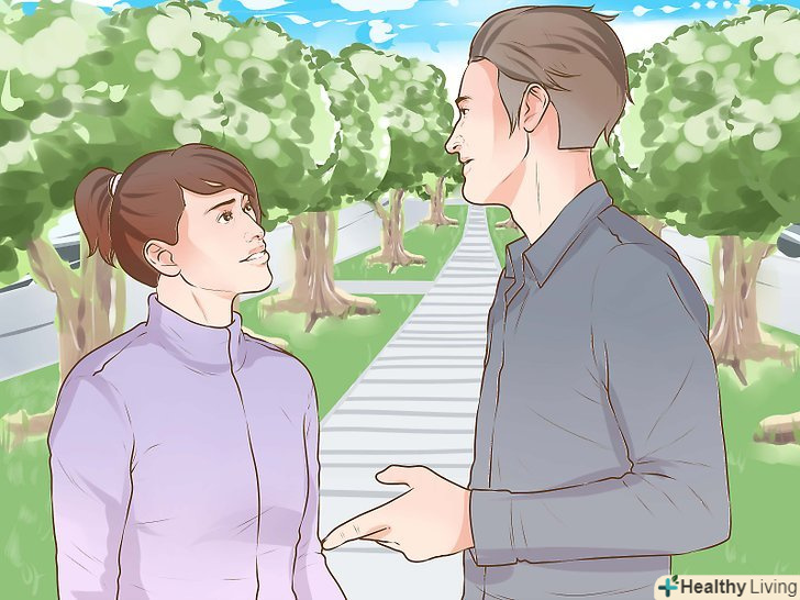 Подумайте про те, що демонструє ваша мова тіла. часом мова вашого тіла може сказати більше, ніж ваші слова. У більшості випадків мова тіла визначається тим, як ви себе почуваєте, а не тим, що ви хочете зобразити. Але ви можете це змінити, приділивши увагу тому, яку позу ви приймаєте під час розмови. Є деякі прийоми, скориставшись якими ви зможете навчити своє тіло випромінювати впевненість. [15]- Не метушіться. Стійте на одному місці, спирайтеся на обидві ноги, розставлені на ширині стегон. Стійте рівно, не переминайтеся з ноги на ногу.