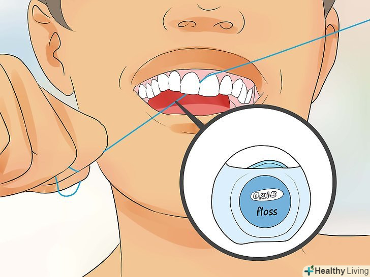 Почистіть зуби зубною ниткою. Стоматологи говорять про те, що мало чистити зуби тільки щіткою, важливо також використовувати зубну нитку. [20] робіть це ретельно, стоматологи радять робити це після кожного прийому їжі.