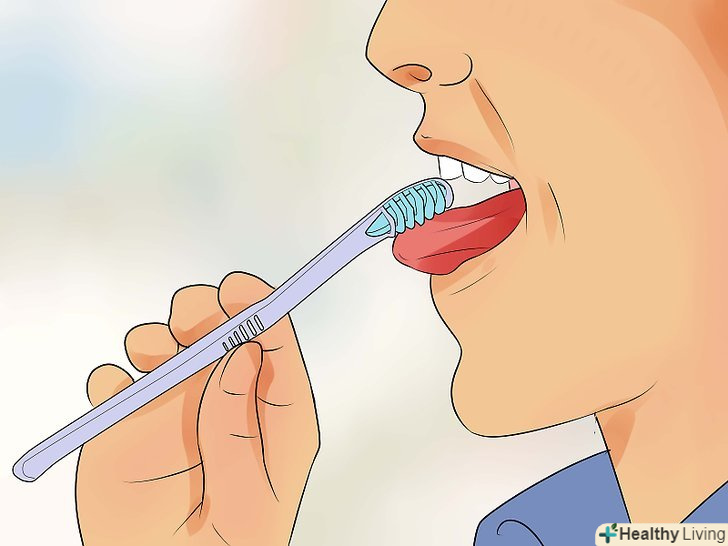 Скористайтеся скребком для мови. у волокнах язика залишаються крихітні шматочки їжі і бактерії, які можуть бути причиною неприємного запаху. Після кожного прийому їжі чистіть мову скребком або зубною щіткою. [23]