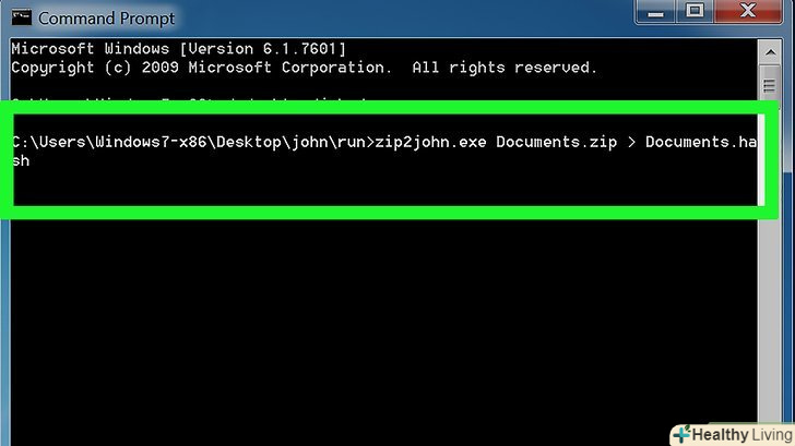 Введіть команду "run". введіть zip2john.exe ім'я.zip gt; ім'я.hash (замість «ім'я» підставте ім'я свого ZIP-файлу), а потім натисніть ↵ Enter.- Наприклад, якщо архів називається " hello.zip", введітьzip2john.exe hello.zip gt; hello.hash.