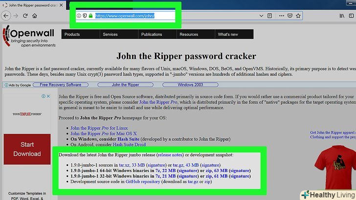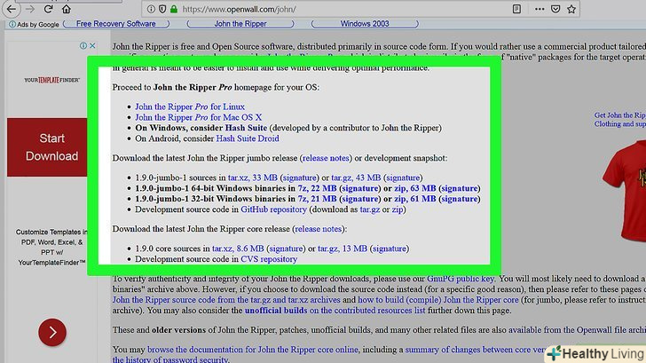 Скачайте John the Ripper. перейдіть на сторінку http://www.openwall.com/john / у веб-браузері комп'ютера, а потім натисніть " John the Ripper 1.8.0-jumbo-1 (Windows Binaries, ZIP, 34 MB)» в розділі «community enhanced version» (розширена версія спільноти) в нижній частині сторінки.
