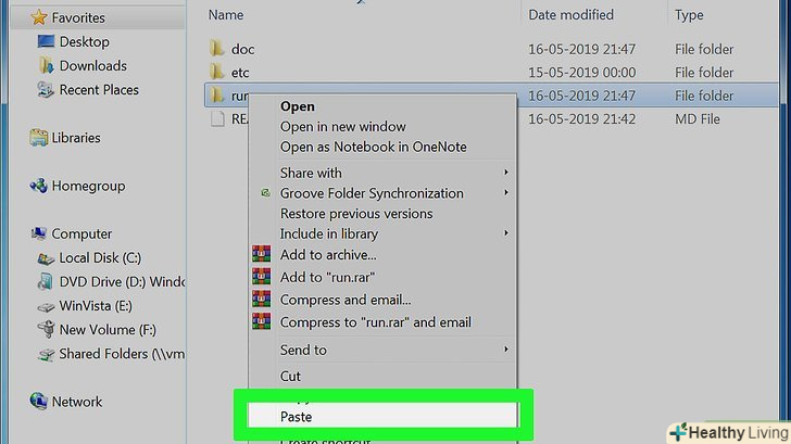 Скопіюйте свій zip-файл в папку "run«, яка знаходиться в папці»john". Для цього клацніть по ZIP-файл, натисніть Ctrl+C, відкрийте папку «john», відкрийте папку «run», клацніть по порожньому простору і натисніть Ctrl+V.