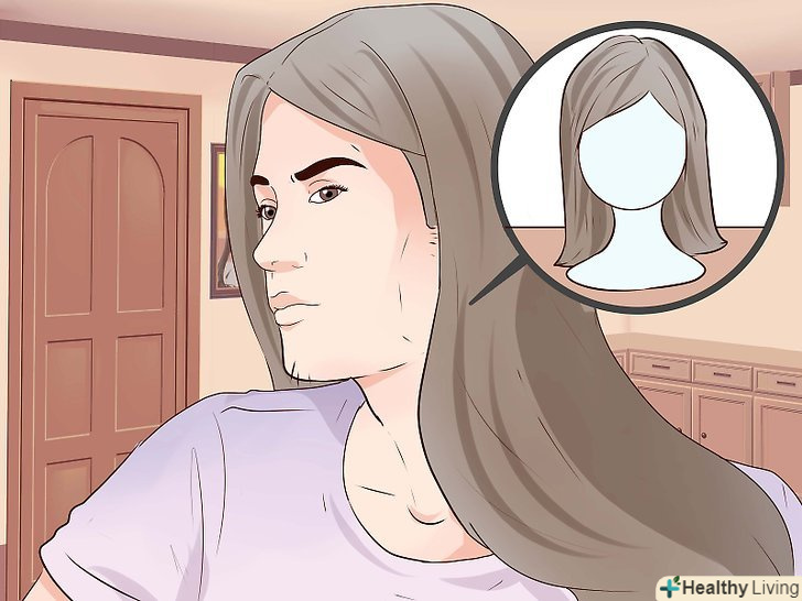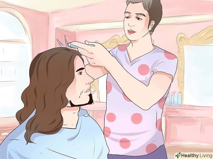 Стрижка. можна підстригти волосся так, щоб вони спадали м'якими хвилями. Це додасть чоловічому обличчю жіночності. [6]- Зачіска з різкими кутами робить обличчя більш суворим і незграбним.