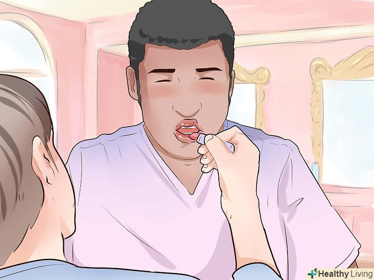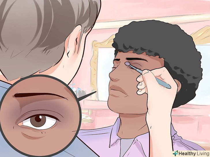 Тональний крем і пудра. підберіть тональний крем в тон шкірі хлопця і нанесіть йому на обличчя. Для завершення основи використовуйте відповідну пудру. [7]