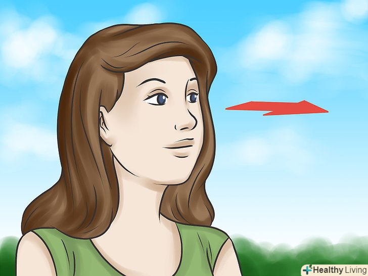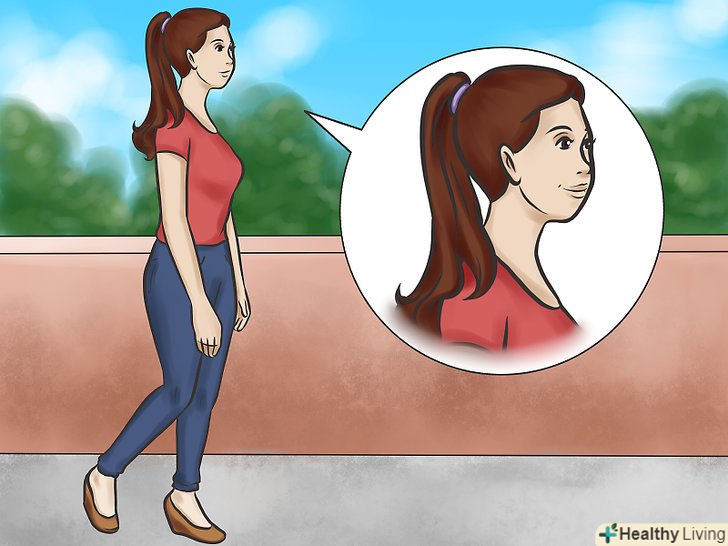 Тримайте голову високо піднятою. перший крок до граціозної постави при ходьбі полягає в тому, щоб тримати голову в природному прямому положенні, а не нахиляти її вниз і не задирати вгору. При правильному положенні голови ваш підборіддя буде розташовуватися паралельно підлозі.- Слідкуйте і за тим, щоб не висовувати голову вперед, таке часто буває при ходьбі на підборах. Якщо зловите себе на цьому, постарайтеся злегка податися назад, щоб голова виявилася на одній лінії з хребтом. [1]