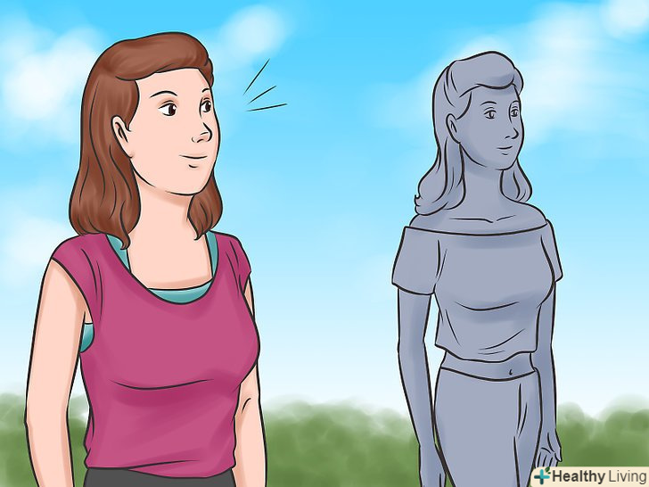 При ходьбі дивіться прямо вперед. не варто витріщатися на кожного перехожого, але і не бійтеся короткого зорового контакту. Навіть при досконалої поставі ви не зможете домогтися граціозності, якщо весь час будете дивитися собі під ноги.- Вам може допомогти наступна вправа. Уявіть собі пряму лінію на підлозі і сконцентруйте увагу на її дальньому кінці. Це допоможе вам дивитися прямо вперед і не турбуватися про прямому зоровому контакті. [6]