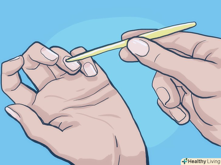 Час від часу відсувайте кутикулу. у багатьох людей, який гризуть нігті, біля основи нігтя не видно білого півкола, оскільки його закриває відросла кутикула. Злегка посуньте кутикулу до основи нігтя, щоб звільнити Це місце. Найпростіше робити це після душу, поки руки і нігті ще вологі.- Завдяки цьому нігті будуть здаватися довшими, а форма стане більш красивою. Все це також може стати мотивацією відмовитися від шкідливої звички.