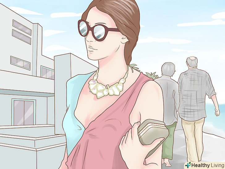 Використовуйте аксесуари, щоб додати родзинку до вашого образу. окуляри, біжутерія, годинник та інші аксесуари можуть додати необхідну деталь до Вашого гардеробу. Вони допоможуть вашому образу бути більш повним, що дуже важливо для того, щоб добре виглядати. Одягнувшись, придивіться і вирішите, як можна доповнити свій вигляд.- Однотонний топ зазвичай добре поєднується з масивним намистом, яке додає пікантності вашому образу.