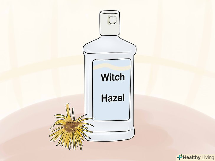 Нанесіть гамамеліс після процедури. це допоможе заспокоїти шкіру після воскової епіляції. Змочіть ватний диск в засобі і погладжують рухами проведіть по зоні, яка була проепільована. Гамамеліс можна купити в місцевій аптеці або замовити в Інтернеті. [6]