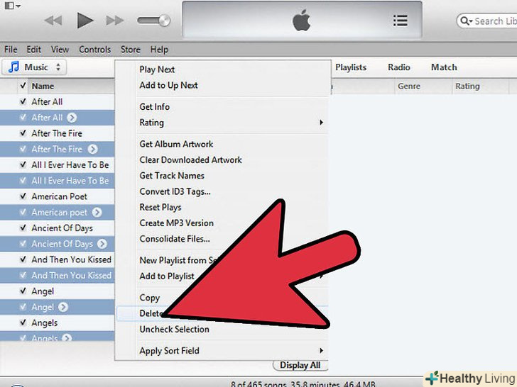 Видаліть всі копії.відсортувавши список, можна приступити до видалення. Можна видаляти як по одній пісні, натискаючи Delete, так і відразу кілька-виділивши їх із затиснутою клавішею Shift.