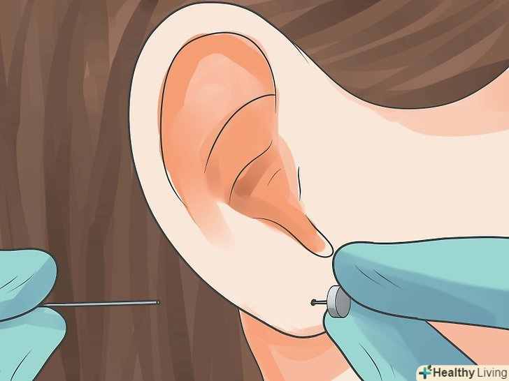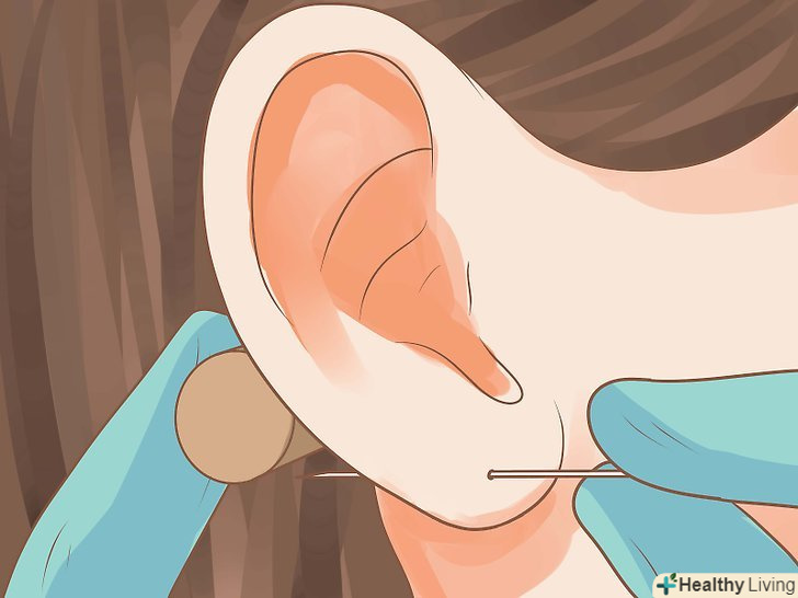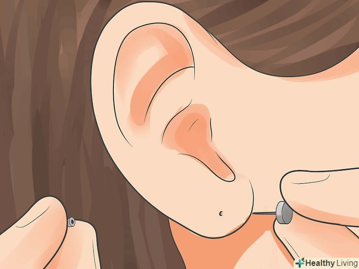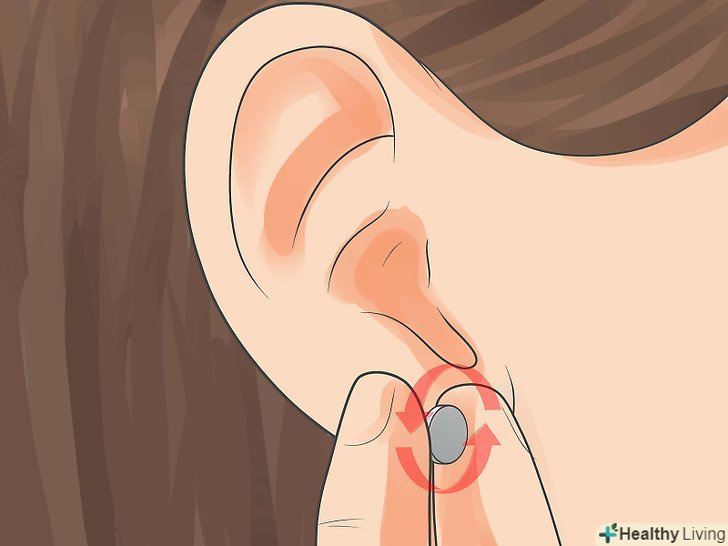 Прокручуйте сережку, коли ви чистите вухо. візьміться за кінчик сережки-гвоздика і прокрутіть її в вусі. Це необхідно, щоб розширити отвір і не дати йому щільно зарости навколо сережки. [10]