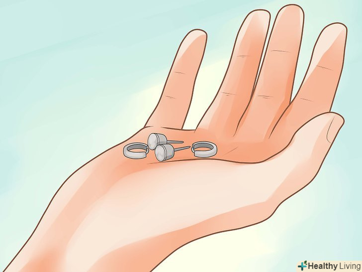 Виберіть собі сережки. Коли ви тільки проколете собі вуха (мочки або хрящ), то краще деякий час носити спеціальні сережки-гвоздики. Підійдуть сережки вагою 3-5 грам і близько 10 міліметрів завдовжки. Така довжина дозволить вам носити їх, навіть якщо вухо у вас набрякне.- У деяких ювелірних магазинах продають сережки для пірсингу з гострими кінчиками. Їх легше вставляти в проколене отвір.