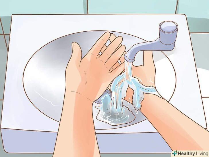 Вимийте руки водою з милом. це дозволить зменшити будь-яку можливість поширення бактерій. Одягніть стерильні латексні рукавички після того, як вимиєте руки. [5]