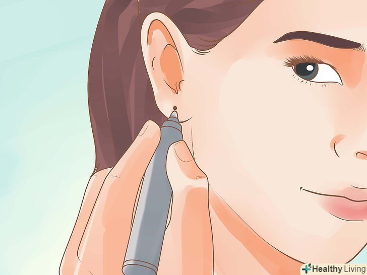 Позначте місце, яке ви хочете проколоти. важливо заздалегідь продумати місце проколу. В іншому випадку ваша Сережка може висіти в вусі криво, занадто високо або занадто низько. Якщо ви проколюєте обидва вуха, подивіться в дзеркало і переконайтеся, що позначки зроблені на одному рівні.- Якщо у вас вже є пірсинг на вухах і ви вирішили додати прикрас, то залиште достатньо простору між проколами, щоб сережки-гвоздики не закривали один одного. Але і не робіть проколи занадто далеко один від одного, інакше це буде виглядати дивно.