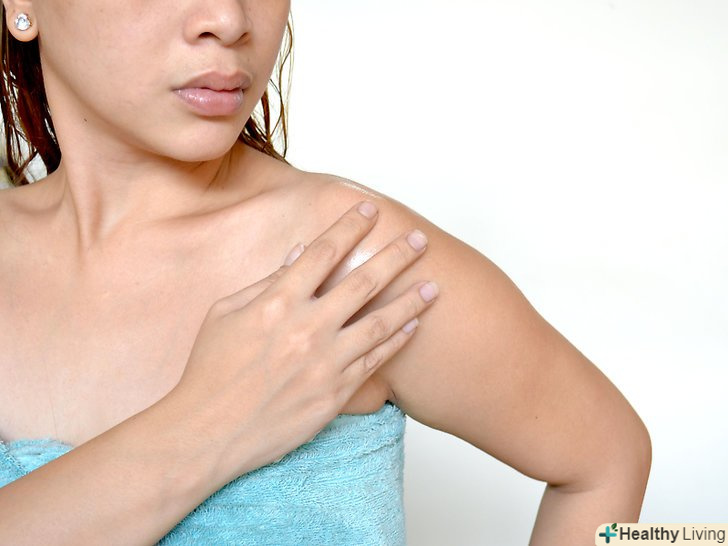Дайте кокосовому маслу вбратися. кокосове масло вбереться в шкіру приблизно за 15 хвилин. Тим часом, залишайтеся у ванній або надіньте халат, щоб не забруднити маслом одяг або меблі.