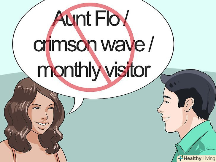 Не використовуйте евфемізми, згадуючи про менструальний цикл, такі як "червоні дні календаря", "Жовтнева революція", тощо. навряд чи він здогадається про що ви говорите, і, може, зрозуміє вас неправильно. [3]- Якщо ви думаєте, як сказати йому про це, дайте йому зрозуміти, що ви хочете поговорити про щось особисте. Скажіть так: "я знаю, що я була дуже примхливою цей тиждень. Це тому, що у мене менструація, через неї я стаю дуже чутливою. Я просто хотіла тобі сказати, що зі мною відбувалося, буду вдячна, якщо ти нікому про це не скажеш".