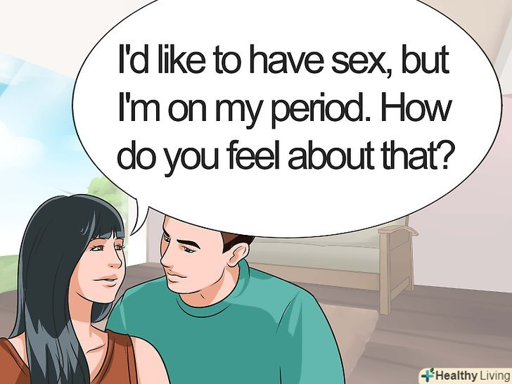 Скажіть своєму хлопцю про вашу менструацію і поговоріть про те, що буде комфортним для вас обох. Ви можете займатися сексом під час менструації, хоча це буде не зовсім акуратно і чисто. Деякі хлопці ставляться до подібних статевим ставленням досить гидливо, а деяким все одно, однак, важливо зрозуміти, як ви самі ставитеся до цього. Якщо вас дратують навіть дотику під час менструації, краще почекати поки вона завершиться, і не займатися сексом в цей період. [7]- Якщо ви хочете зайнятися сексом, проте ви не впевнені щодо його думки з цього приводу, спробуйте сказати: "я хочу сексу, але у мене менструація. Що ти думаєш про це?".