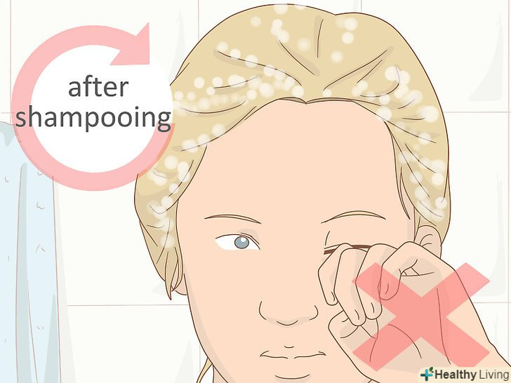 Помивши голову, не торкайтеся руками очей. втираючи в волосся шампунь, ви точно торкнулися його обома руками (або хоча б однієї). Після нанесення шампуню на волосся на ваших руках все ще можуть залишитися сліди шампуню. Тому якщо ви торкнетеся очей руками або пальцями, шампунь може потрапити на слизову.