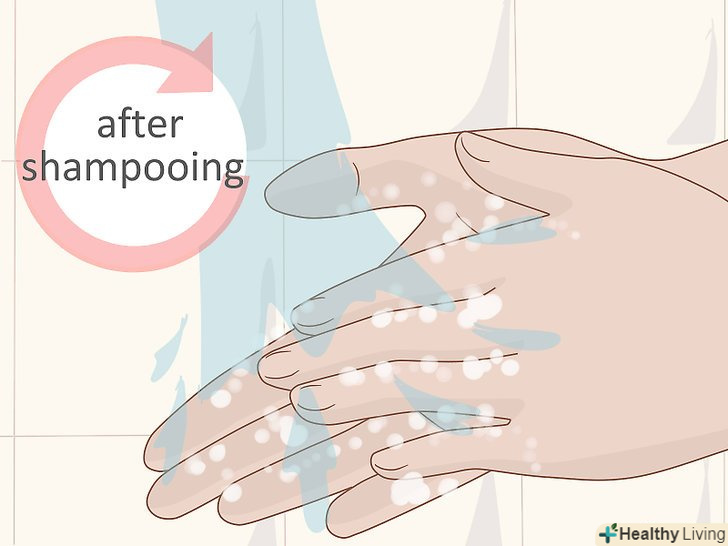Після того, як помиєте голову, вимийте руки. якщо відразу після миття голови вам потрібно торкнутися очей або обличчя руками, спочатку сполосніть їх під водою. Можна помити руки з милом, але це необов'язково. Переконайтеся в тому, що добре змили шампунь (і, можливо, мило) з долонь і тильній поверхні кистей, з пальців і міжпальцевих проміжків. Тільки після цього можна спокійно доторкатися до очей.